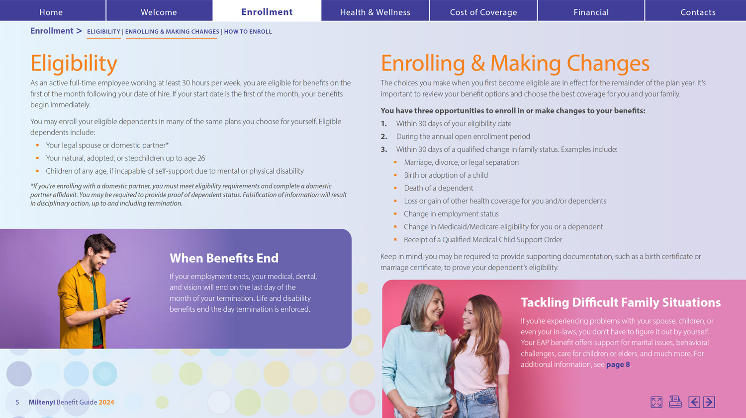 To meet the needs of employees with all levels of benefits literacy, CPI used infographics and callouts for important information, and minimized text to make the content more comprehensible.